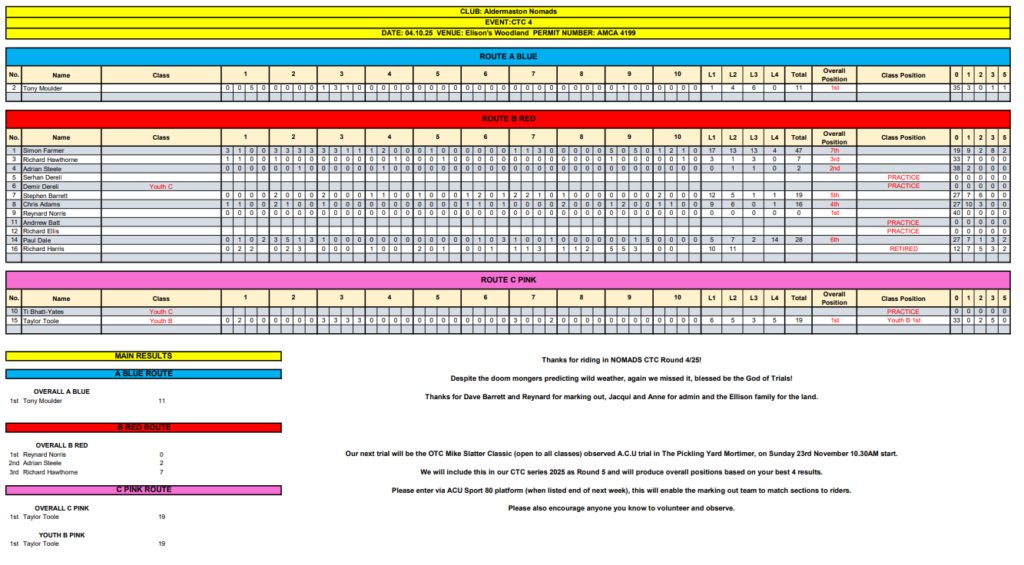 Don’ forget our next trial will be the Open-to-Centre’ Mike Slatter’ Classic (open to all classes) observed A.C.U trial in The Pickling Yards Mortimer, on Sunday 23rd November 10.30AM start. As it’s part of the Southern Centre classic championship, entries are available on ACU Sport80